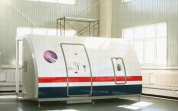 主要功能是培训机组人员在飞机发生火警情况下,正确掌握机载灭瓶的使用方法,熟练掌握紧急情况下的灭火技能。灭火训练舱尺寸为:长11米.宽3.8米.高2.8米。