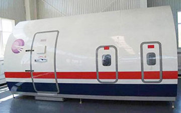 用于培训乘务人员和地面人员,在正常/应急情况情况下正确开启和关闭飞机舱门的操作技能。ARJ-21舱门训练器长3.76米、高2.436米、宽2米、自重3吨、满员可载12人。