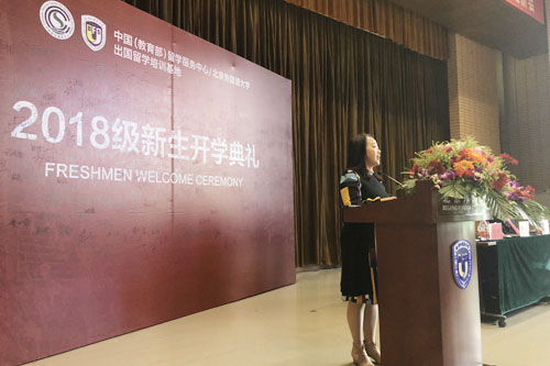 上午九点,张培副主任宣布北京外国语大学网络与继续教育学院2018级第十二届出国留学新生欢迎会暨安全知识讲座正式开始!