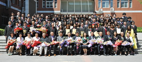 赵世平书记宣读了2010级3+2留学SQA-AD项目学生的毕业决定,蔡坚处长宣读毕业生名单。随着加冕进行曲的奏起,邱鸣副校长为毕业生颁发毕业证书并与每位学生合影留念。在这一刻,学生们心里溢满了不舍与感动,感谢二外的培养,感谢老师的教导。