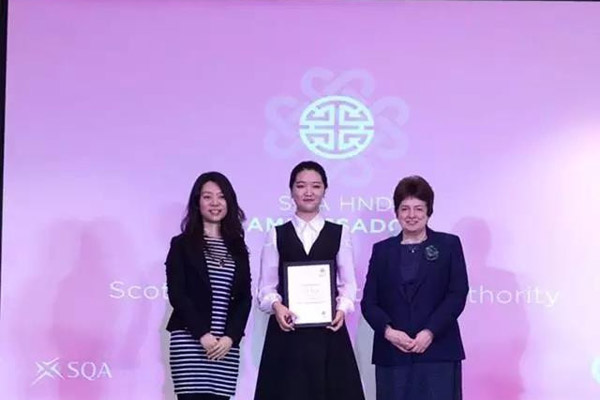 2017年英国苏格兰学历管理委员会从中国30多所承办HND项目的院校中评选出一批优良的项目学生担任"理想大使"一职。SQA"理想大使"作为项目的优良学生代表,将会向社会各界展示SQA-HND的教学理念,质量标准以及社会责任等。