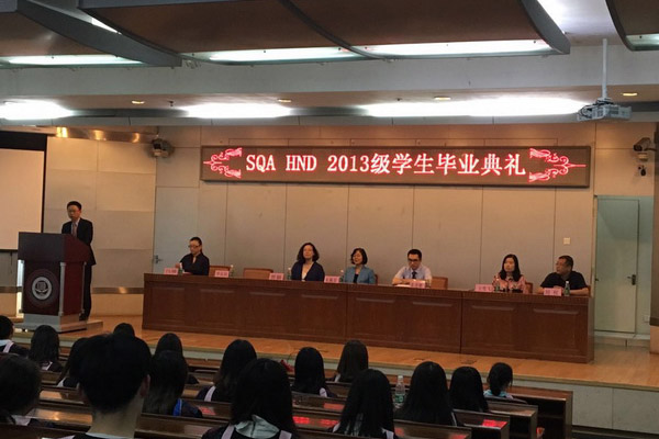 北京第二外国语学院朱佩芬副校长、教育*留学服务中心英国高等教育文凭项目代表贾颖主任、英国苏格兰学历管理委员会驻华代表张进敏先生、国际交流合作处王雪飞副处长、北京第二外国语学院海外教育学院罗从科书记、刘权院长、白婧副院长以及教师代表、部分家长和全体2013级毕业生参加了毕业典礼。