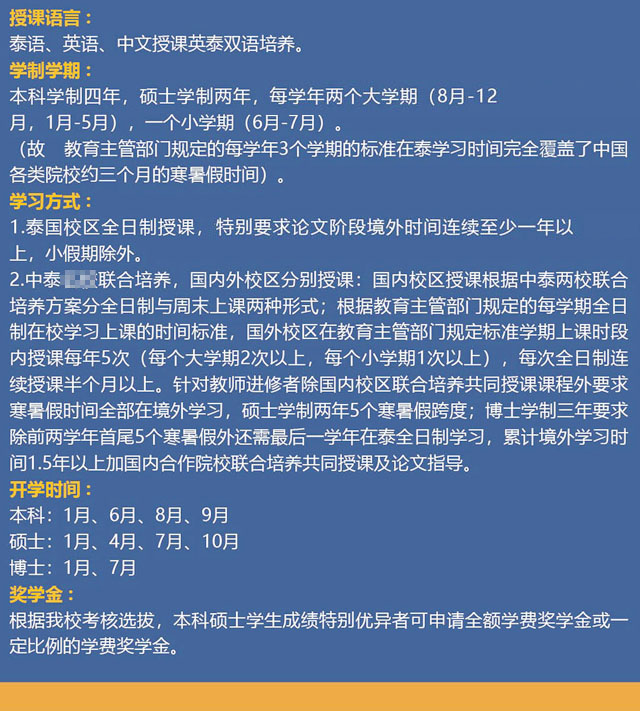 泰国格乐大学中文授课高中起点4.5年本硕连读项目