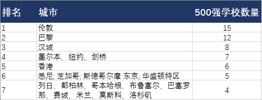 据泰晤士高等教育2017世界排名,在学生夜生活和学术成就方面,伦敦是*好的大学城市。但该排名并未考虑学生的满意度及学费等因素。根据该数据,伦敦和洛杉矶两座城市并列*一,坐拥4所全球前100强高等学府。在全球前500的高校中,伦敦拥有15所,位居*一,巴黎有12所,位居第二。