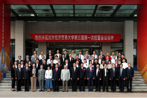 2011年9月24日,正值我校举办庆祝建校60周年盛典前夕,隆重召开了对外经济贸易大学校董会第三届*一次会议。根据国家相关政策和实际工作需要,此次会议选举施建军校长为校董会第三任主*,原对外经济贸易部部长石广生、原国家证监会主*刘鸿儒、国家开发银行董事长陈元为荣誉主*。